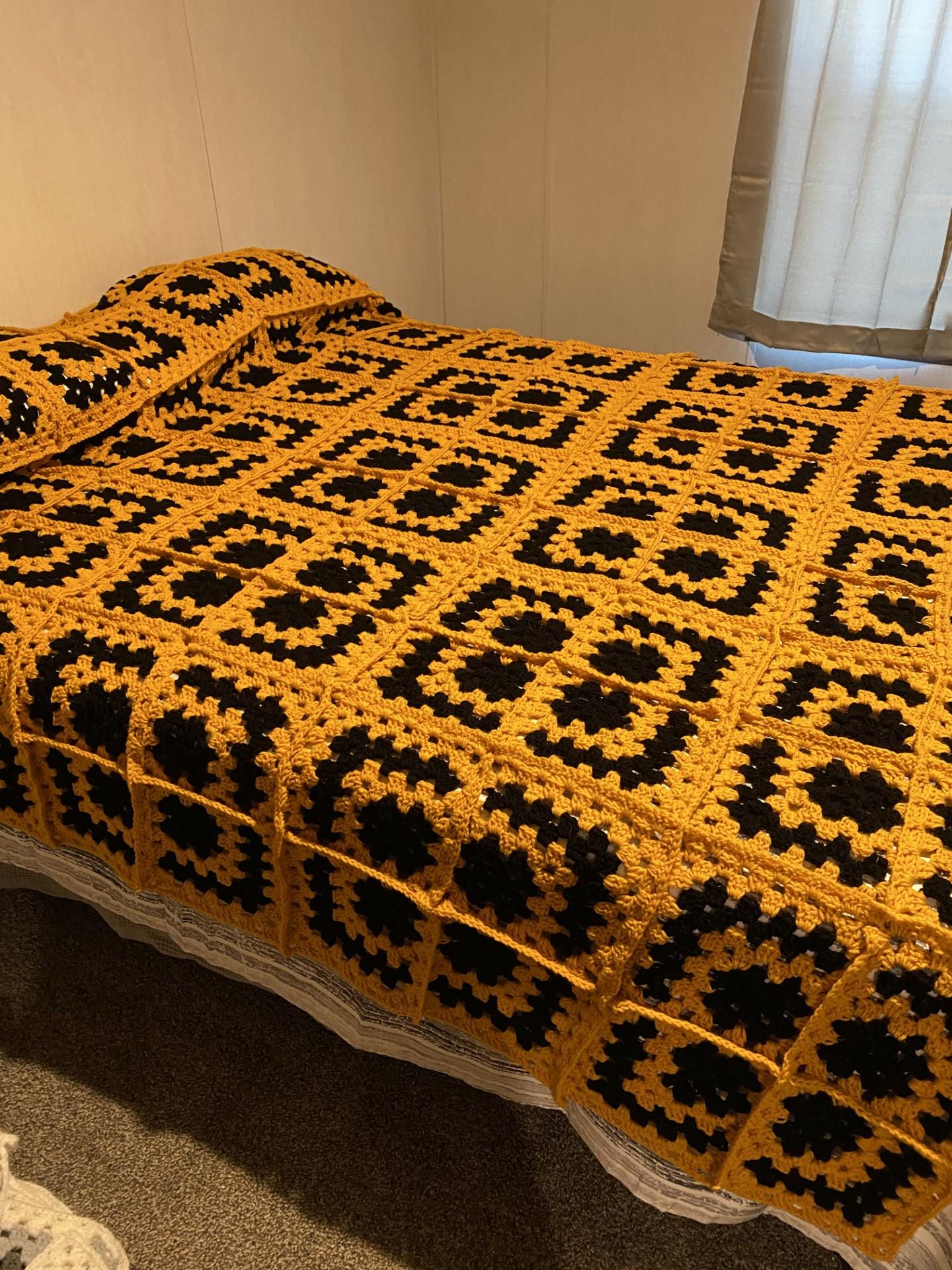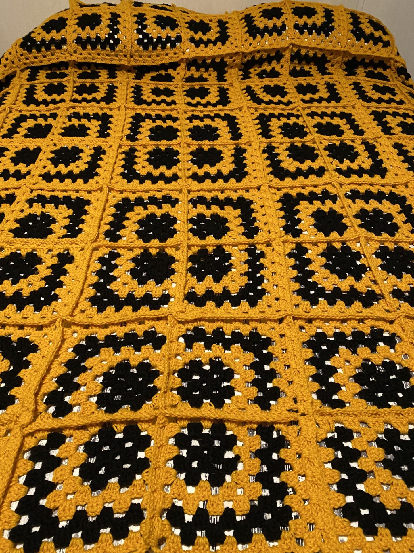 Granny Square Yellow and Black Blanket Crochet Pattern