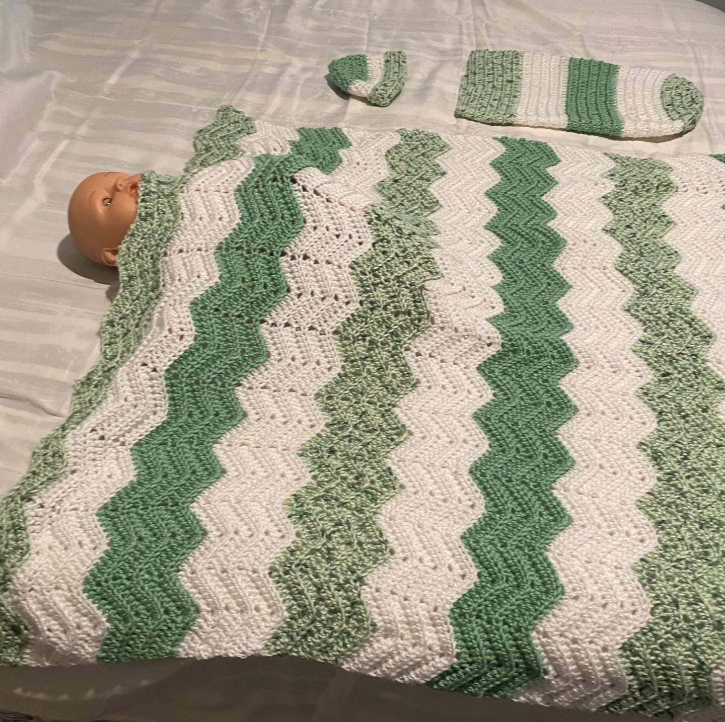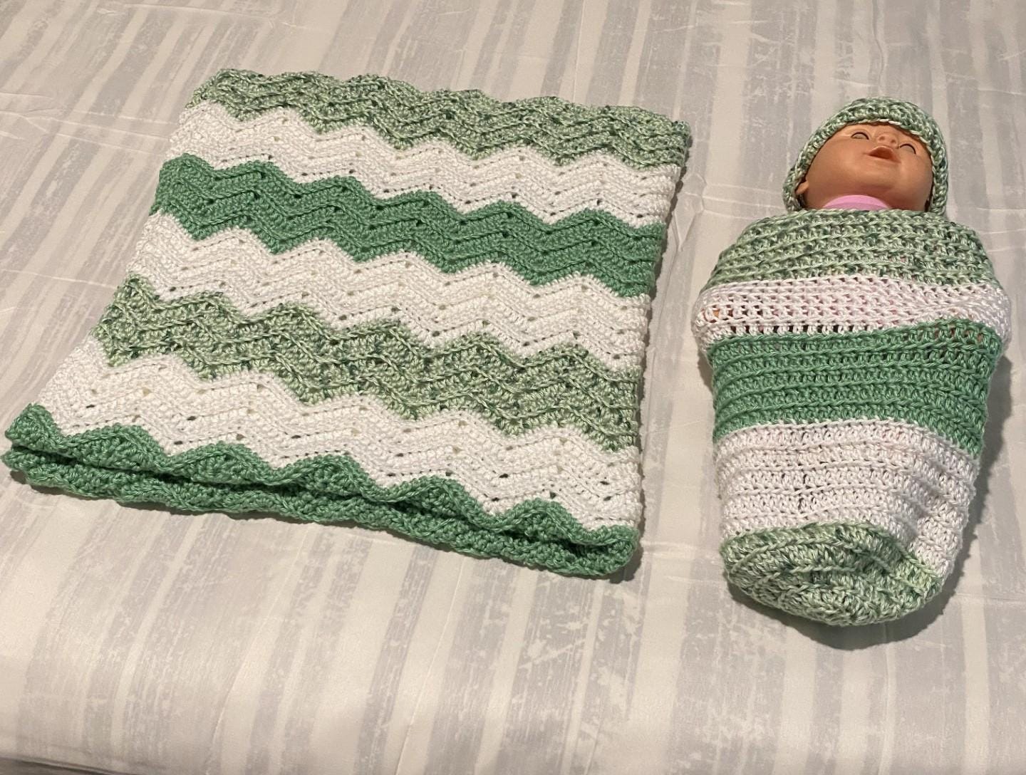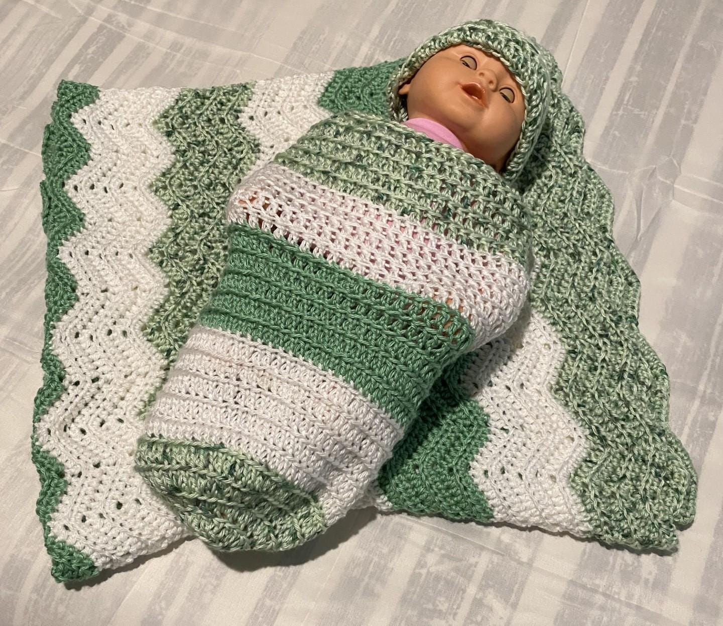 Baby Bundle Gift Set, Green Speckled Baby Blanket, Green Speckled Baby Swaddle and Green Speckled Baby Beanie. You will receive a pdf downloadable crochet pattern for all 3 items. Bundle and save. Each item can be purchased separately.