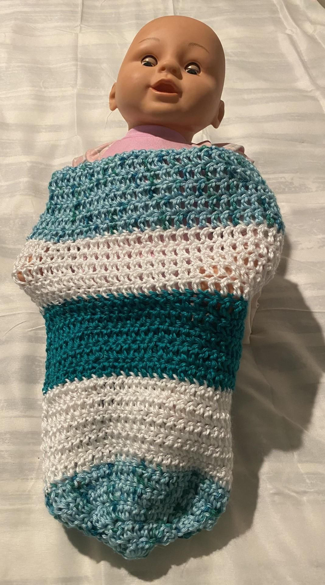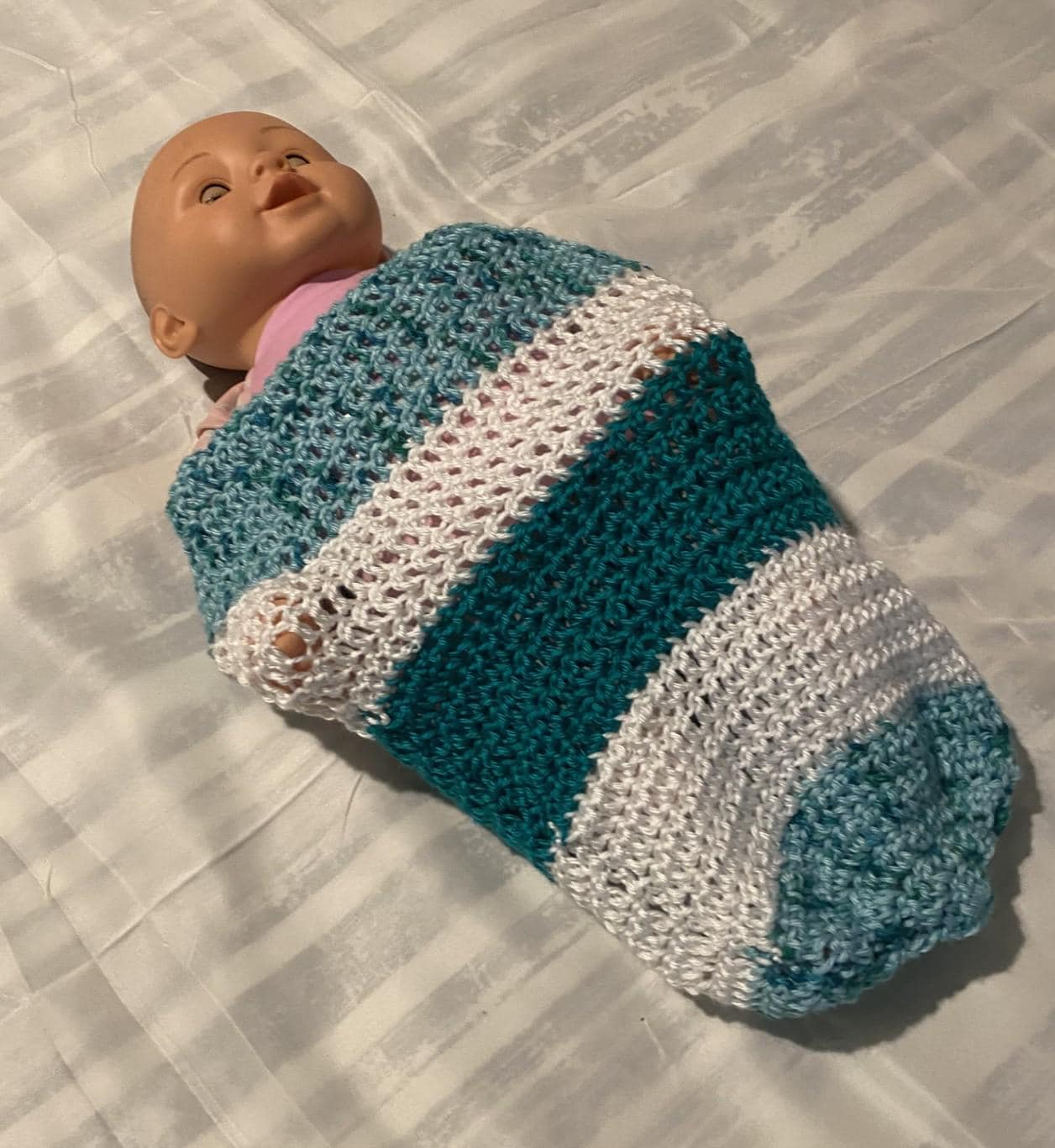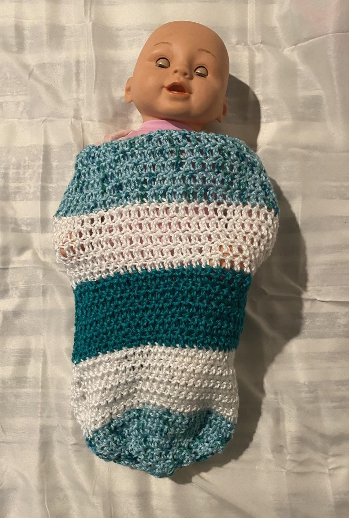 Blue Green Speckled Baby Swaddle Crochet Pattern